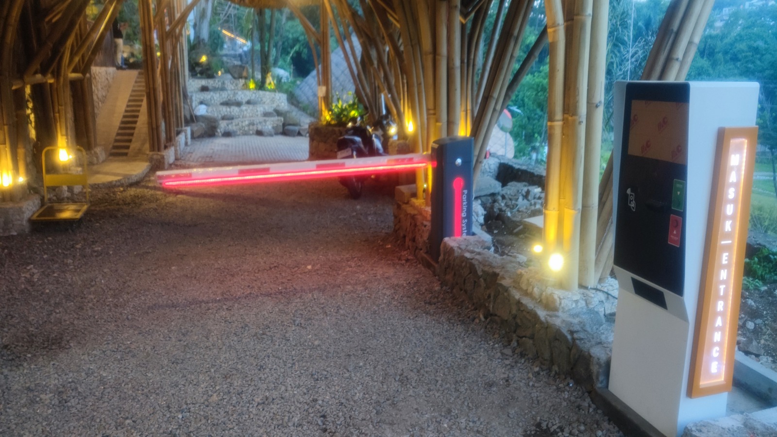 Pada pintu masuk area digunakan automatic barrier gate dengan sistem manless membatasi para pengunjung agar lebih tertib, teratur dan terkontrol.